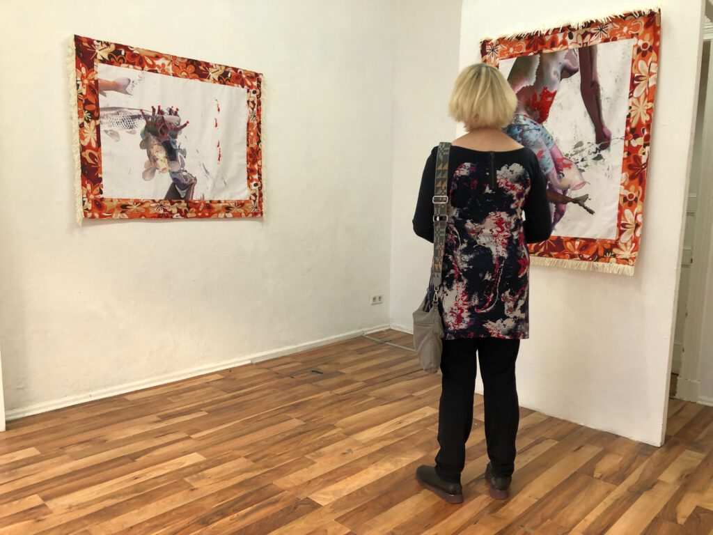 Die Einzelausstellung „Time Is a healer“ präsentiert eine Werkreihe der Berliner Künstlerin Jonny Star, die während des Corona-Lockdowns mit Genauigkeit und großer Liebe zum Detail gefertigt wurde. Die Werkreihe/Serie Space umfasst besonders ausdrucksstarke und hochwertige Arbeiten der Künstlerin und lässt uns in eine neue Bildsprache eintauchen, die sowohl Malerei, Fotografie, digitale Montage und Textilkunst vereint. Sinnlich, ästhetisch und ausdrucksstark, laden die Arbeiten den Betrachter in einen traumhaften Raum ein, in dem sich die Lebewesen Mensch, als weiblicher Körper, hier die Künstlerin selbst, und Tier, als japanischer Zierkarpfen Koi, begegnen und zu tanzen, schwimmen, schweben scheinen.